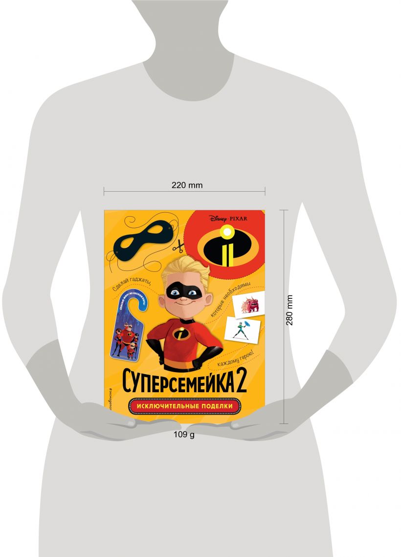 Героями не рождаются, ими становятся! У тебя появился отличный шанс, чтобы стать СУПЕРОМ! Внутри книги ты увидишь заготовки для самых классных поделок: маска супергероя, фигурка Эластики, табличка на дверь, открытки, закладки и даже игра, развивающая зрительную память.