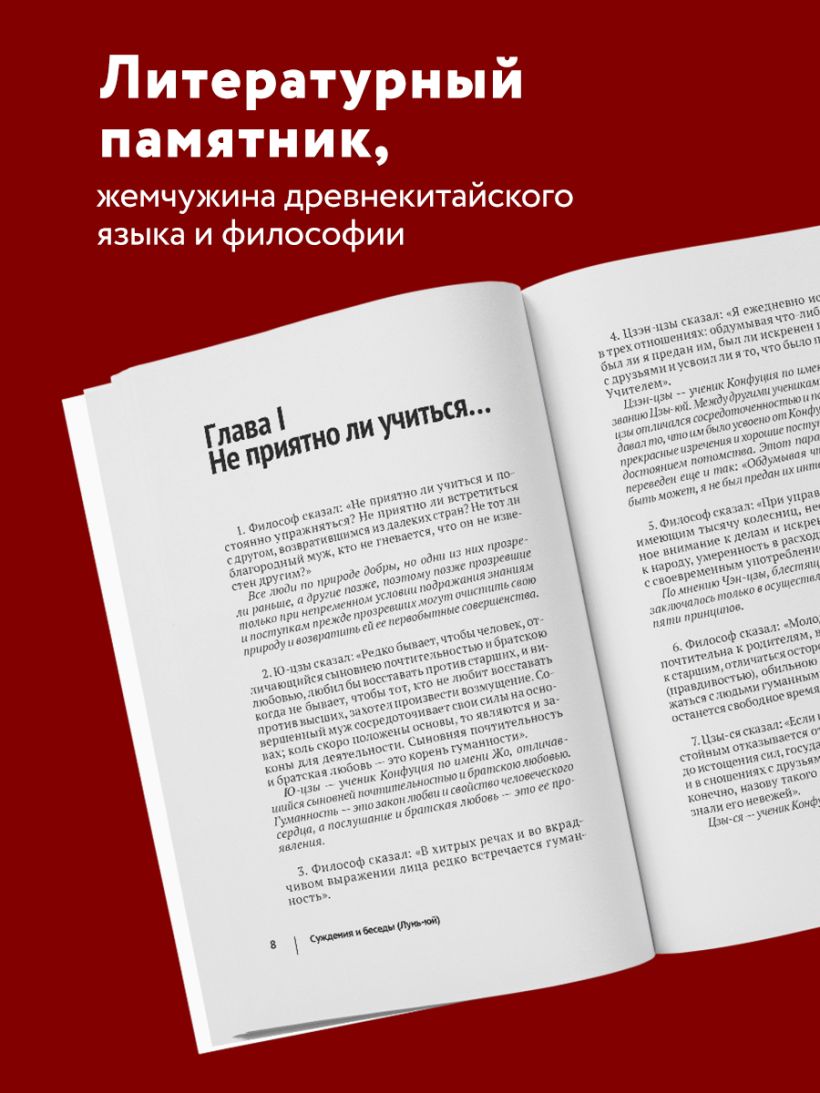 «Суждения и беседы» Конфуция — главная книга конфуцианства и, пожалуй, магистральный философский трактат всей китайской культуры. Многие века этот текст считался обязательным для заучивания в классическом образовании. Кроме того, это величайший литературный памятник, жемчужина древнекитайского языка и философии. Он знакомит читателя с мыслями одного из величайших учителей древности — Конфуция — чьи уроки стойкости, благородства и житейской мудрости не теряют актуальности по сей день.
