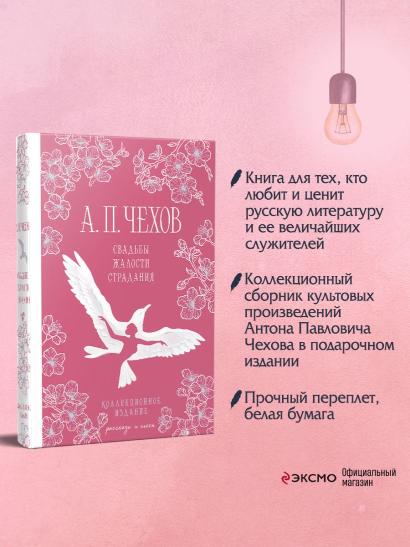 Сегодня наш читатель образован, собран и привык схватывать информацию в один пристальный взгляд. Раз: и мы уже в курсе про кота Шрёдингера, два (во время ланча) — в голове полугодовая подготовка к марафону со спортивным питанием, на третий раз душа и разум просят замедлиться и почитать что-то на подумать. Здесь и нужен наш великолепный коллекционный сборник под говорящим названием «Свадьбы, жалости, страдания» Антона Павловича Чехова.