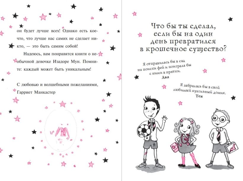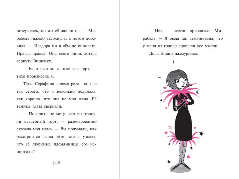 Крупный шрифт, лёгкий слог, интересный сюжет — книга прекрасно подойдёт для самостоятельного чтения. Внутри — красивые чёрно-розовые иллюстрации.