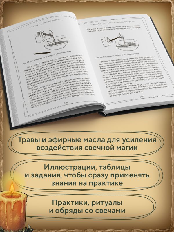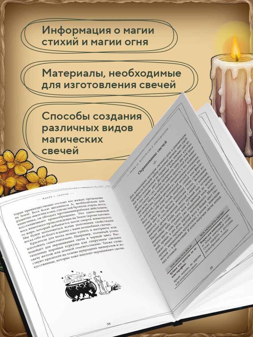 • Наглядные иллюстрации, полезные таблицы и практические задания, помогающие закрепить знания и начать магическую работу со свечами.