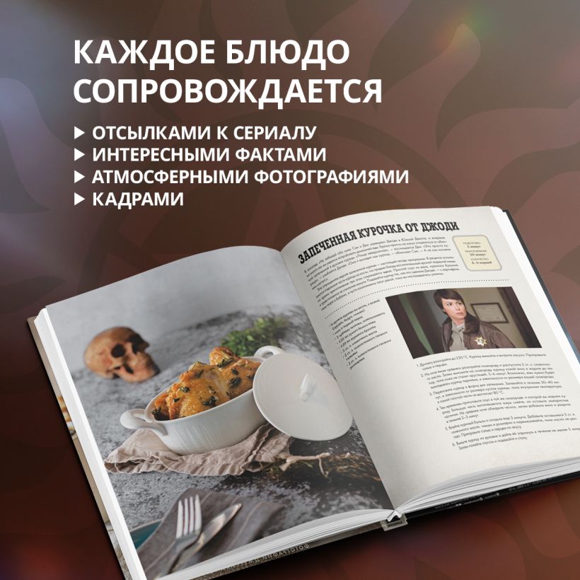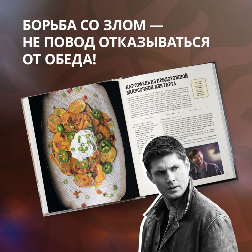 Для охотников и демонов, ангелов и королей ада, вампиров и джиннов, ругару и просто фанатов Дина и Сэма Винчестеров очешуенная кулинарная книга по мотивам легендарного сериала «Сверхъестественное».