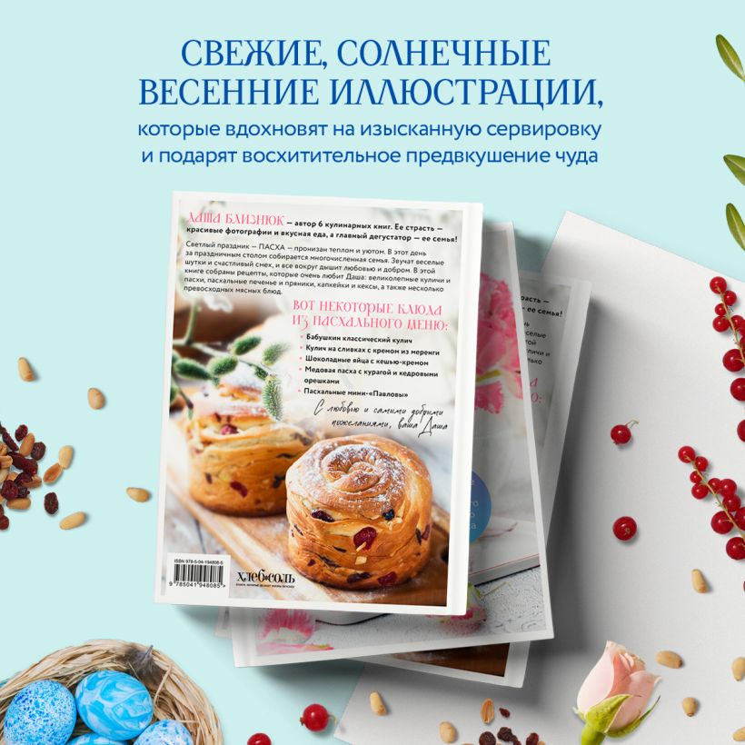 Как испечь куличи, чтобы они получились как у бабушки? Что делать, чтобы они поднялись, пропеклись, не подгорели? Как правильно приготовить глазурь для украшения? Бывают ли пасхи без творога? Чем наполнять тесто и творожную массу для лучшего вкуса кулича и пасхи? Что такое айсинг и краффин? Какие секреты есть у красящихся яиц? На все эти и другие вопросы отвечает Даша Близнюк своими подробными описаниями ингредиентов и шагов приготовления. Классический бабушкин кулич, шоколадные куличи и пасхи, заварная, ореховая и медовая пасхи, пасхальные печенья и пряники и т.д. ― вас ждет великолепное разнообразие этих особенных, присущих именно русской кухни изделий и авторская интерпретация пасхальной выпечки, пришедшей к нам из европейской традиции.