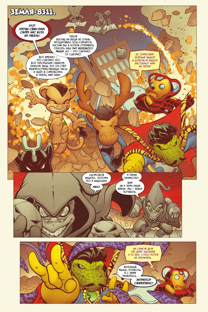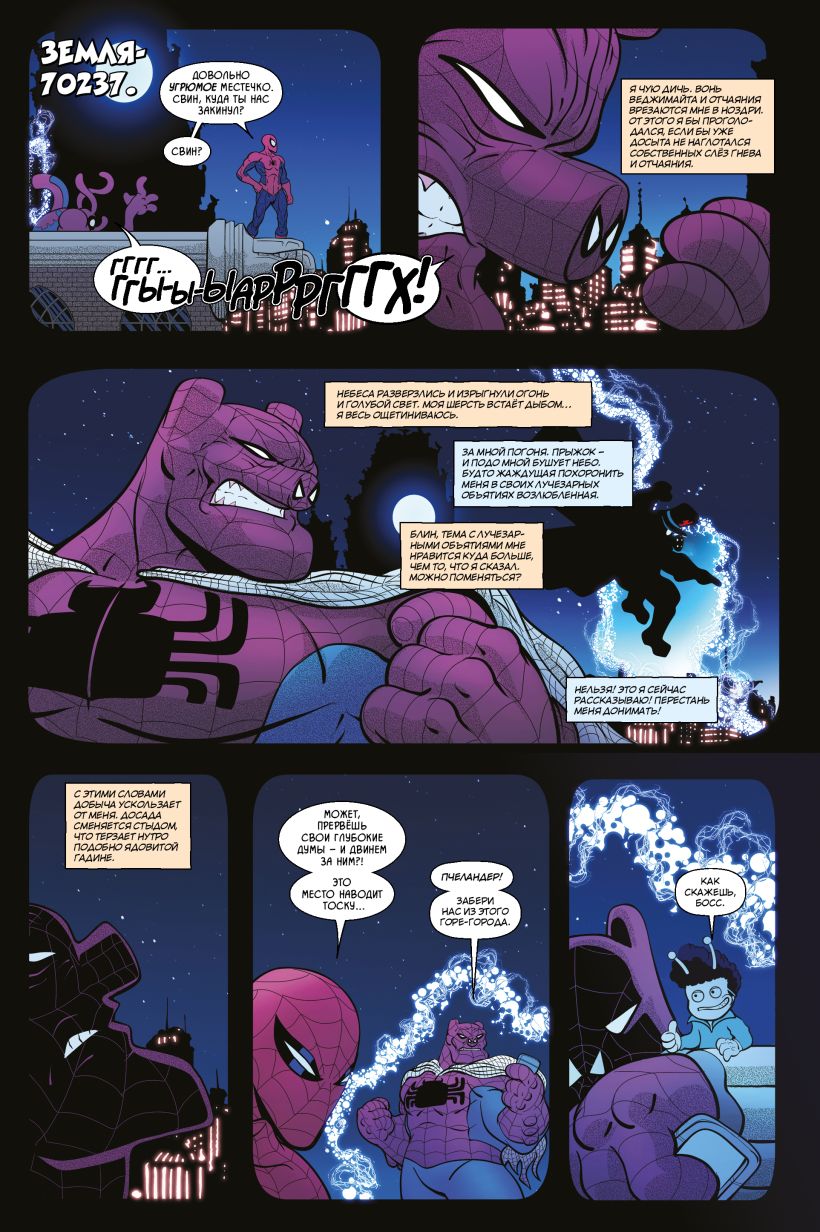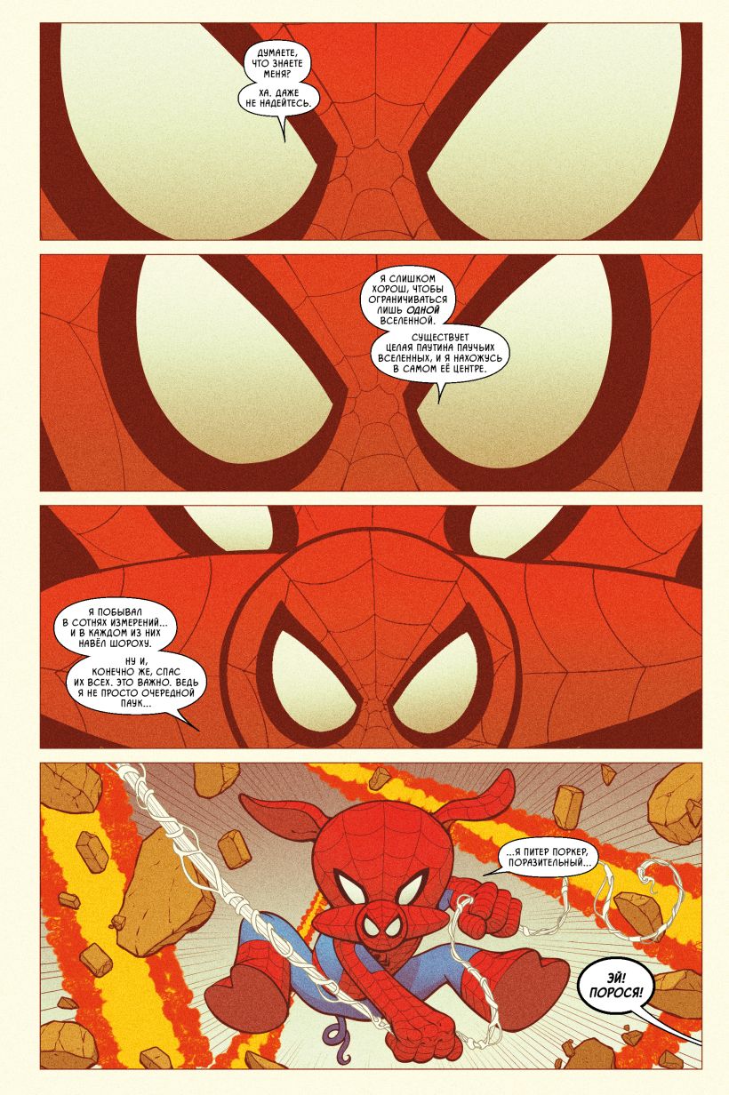 После славных похождений Свина-Паука по паучьим мирам в жизни Питера начались тихие деньки. Но им не суждено было долго продлиться, — Свин застолбил за собой правр на все межпространственные приключения, а тут как раз одно такое намечается! Родному миру Свина угрожает хрюкокалипсис, и без помощи Человека-Паука тут будет явно не обойтись!
