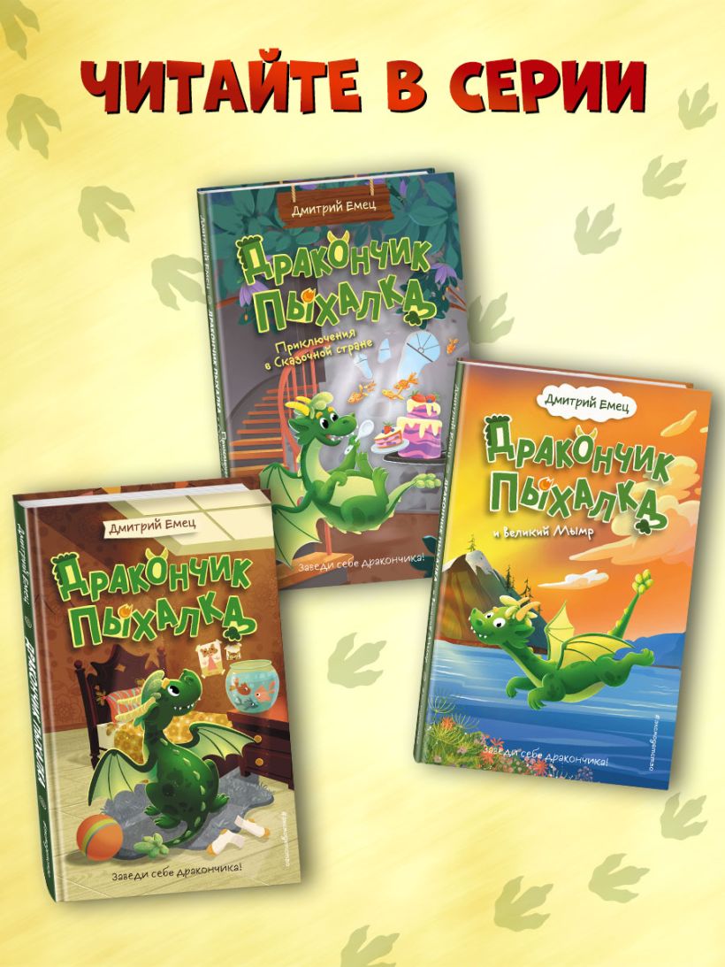 Автор «Дракончика Пыхалки» — знаменитый российский писатель Дмитрий Емец, известный не только книгами о «Тане Гроттер», но и историями для детей помладше, такими как «Дракончик Пыхалка», «Приключения домовят» и «Бунт пупсиков»! Общий тираж книг автора уже более 7 миллионов экземпляров!