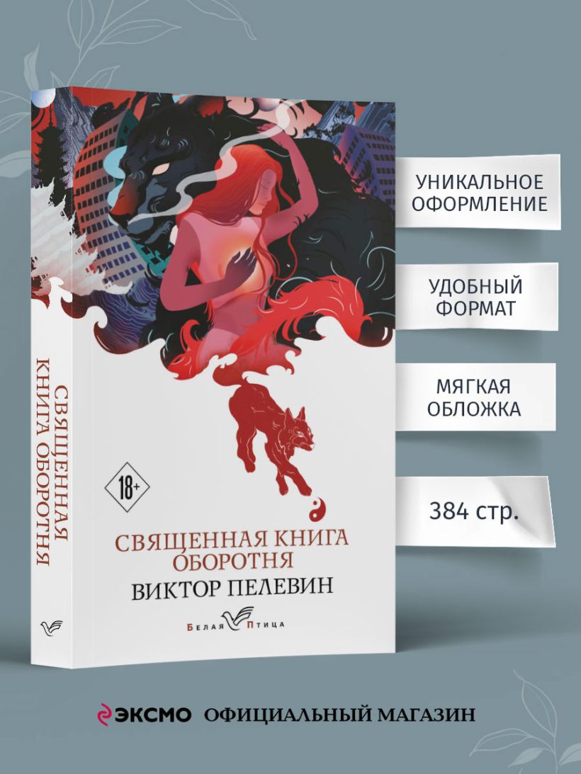 «Священная книга оборотня» — один из «главных» романов Виктора Пелевина. В нем, еще задолго до стремительно охватившей весь мир моды на нечистую силу, эти милые, но коварные полулисицы и полуволки уже вовсю вершили людские судьбы. А уж если оборотням случилось полюбить друг друга, то сотрясения тверди земной грозят погубить все человечество.