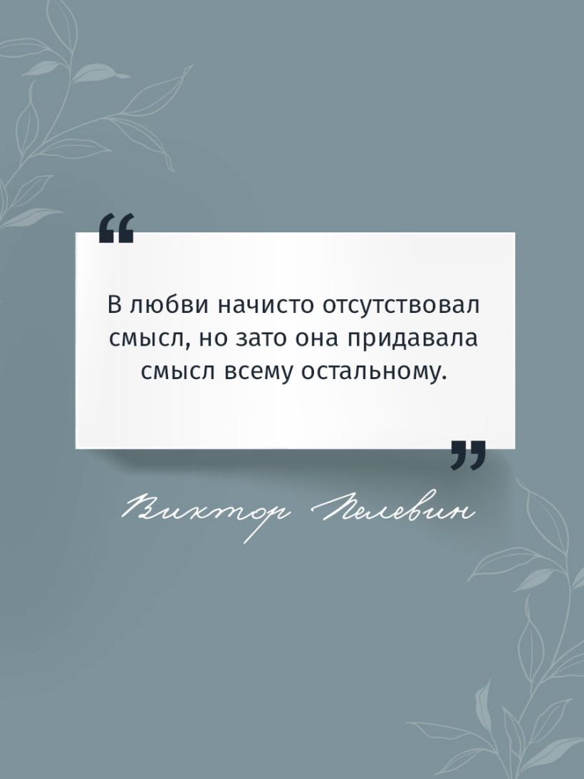 «Священная книга оборотня» — роман, полный юмора, философии и сексуальной энергии. Пелевин, как никто другой, умеет объединить тонкие материи и ткать из них литературное полотно самого высокого качества.