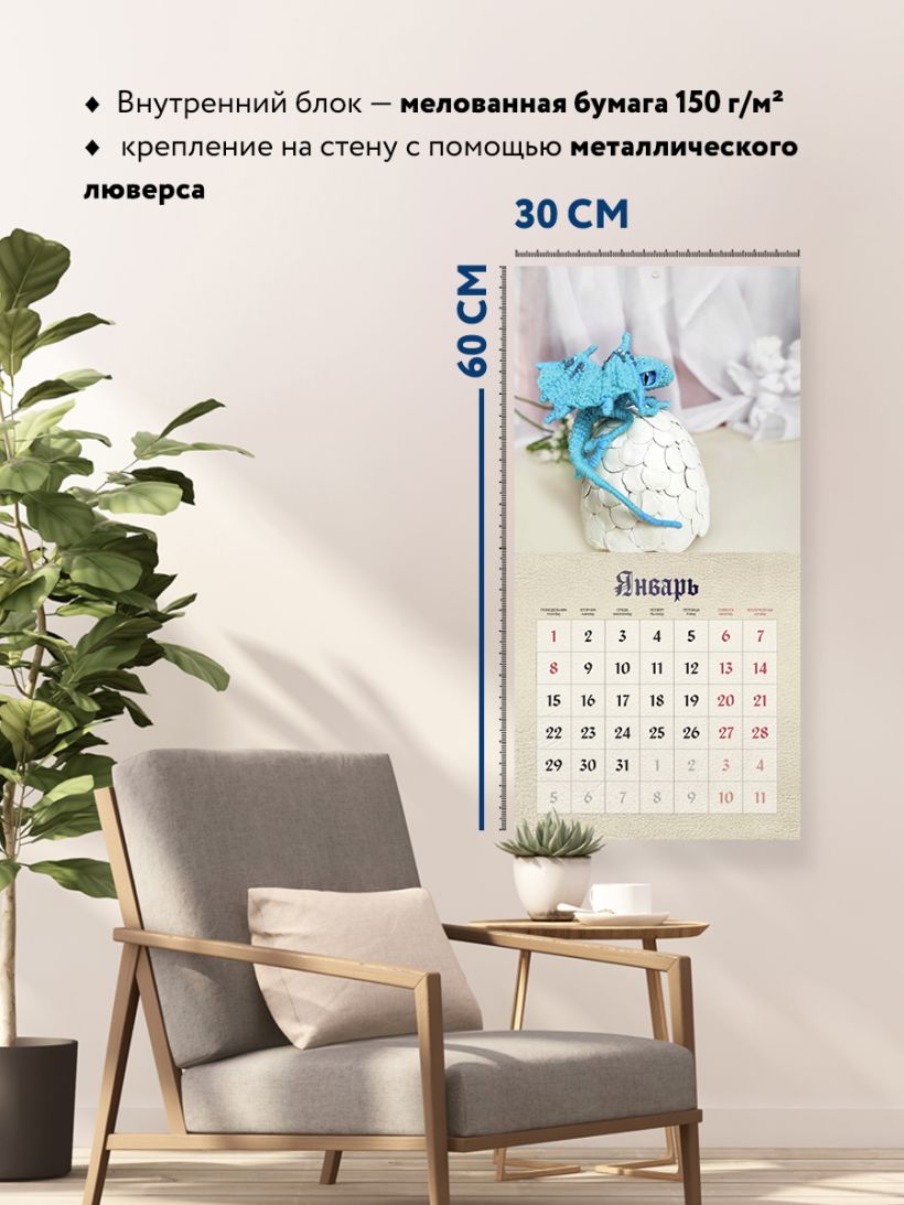 - Тип календаря — настенный перекидной.