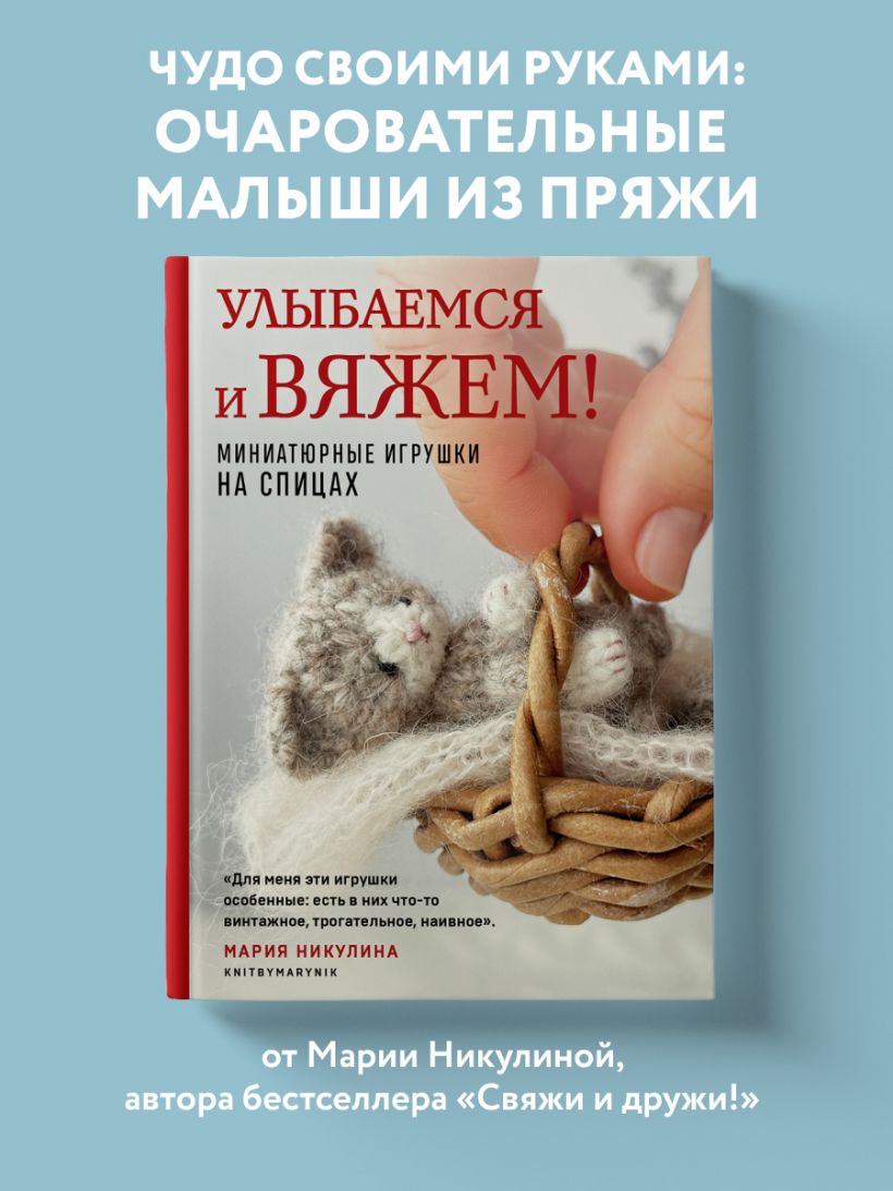 Очаровательные малыши, почти как живые! Спящий в детской ладошке котенок или крохотная чайка в красном шарфике — связанные спицами игрушки бесконечно умиляют и вызывают улыбку! Целая коллекция связанных зверят ждет вас в новой книге Марии Никулиной, на этот раз посвященной миниатюрам.