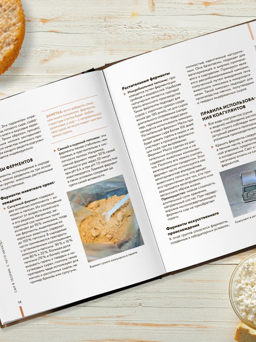 Глава «Сыр на практике» откроет 22 рецепта сыров и кисломолочных продуктов. Научитесь готовить творог, нежный маскарпоне, моцареллу и сыр «Российский», а также сыры с плесенью — например, камамбер и «Дон Симон».