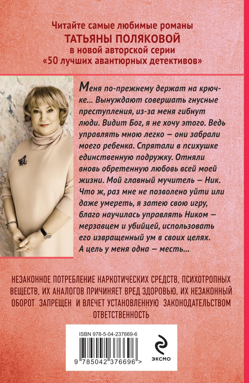Меня по-прежнему держат на крючке… Вынуждают совершать гнусные преступления, из-за меня гибнут люди. Видит бог, я не хочу этого. Ведь управлять мною легко — они забрали моего ребенка. Спрятали в психушке единственную подружку. Отняли вновь обретенную любовь всей моей жизни. Мой главный мучитель — Ник. Что ж, раз мне не позволено уйти или даже умереть, я затею свою игру, благо научилась управлять Ником — мерзавцем и убийцей, использовать его извращенный ум в своих целях. А цель у меня одна — месть…