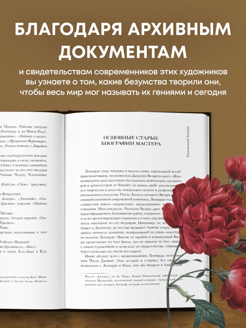 Благодаря архивным документам и свидетельствам современников Леонардо да Винчи, Караваджо и Ван Гога, вы узнаете о том, какие безумства творили эти художники, чтобы весь мир мог называть их гениями вплоть до сегодняшнего дня.