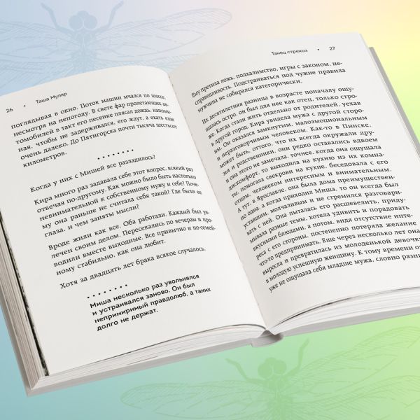 «Танец стрекоз» — новый сборник, состоящий из повести и рассказов популярного блогера, автора книг «Любовь без дублей» и «Игры с небом» Таши Муляр. Правда ли, что первые чувства — самые сильные, и нужно ли спустя тридцать лет возвращать свою первую любовь? Почему даже таким близким людям, как мать и дочь, бывает трудно понять друг друга? К чему приводят перемены и всегда ли их стоит бояться? Герои этой книги сталкиваются с самыми разными ситуациями: расставанием, предательством, трудностями в отношениях с собственными детьми, одиночеством и другими непростыми испытаниями. Они учатся жить заново, и со временем каждый находит именно то, что так долго искал.