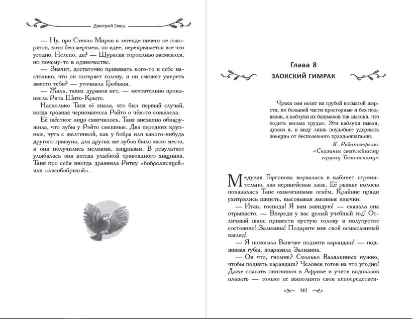 Когда-то давно страшная колдунья Чума-дель-Торт попыталась уничтожить малышку Таню Гроттер, но древняя магия защитила девочку и вытеснила черную волшебницу в другой мир — зеркальное отражение нашего. Чума не погибла в нем, она смогла выжить и захватить там власть. С тех пор ее самым страстным желанием было вырваться из мира-двойника и отомстить. Все, что для этого нужно: уничтожить тонкую и очень прочную границу между реальностями. Ни одна сила, ни одно существо не способно на такое! Кроме маленькой серенькой птички — птицы титанов. Лишь для нее не существует ни времени, ни пространства, ни физических преград. Если ее убить, то Стекло Миров исчезнет, и вот тогда Чума-дель-Торт всем покажет! А идеальный кандидат для задания… конечно, девушка, как две капли воды похожая на Таню Гроттер и воспитанная специально для этой миссии.