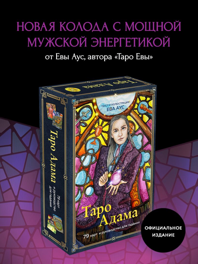 «Таро Адама» — новая колода Евы Аус, наполненная мужской энергетикой и рассказывающая о приключениях, опасностях и рискованных поступках. С ней вы отправитесь в далекие галактики, встретитесь с космическими пиратами и зомби, увидите разрушенные города и апокалиптические пейзажи, побываете в старинных особняках и откроете новые неожиданные авантюрные грани своего «Я»… В этом захватывающем и опасном путешествии вас будет сопровождать и оберегать Адам, молодой и сильный мужчина, олицетворение лучших качеств мужского характера.