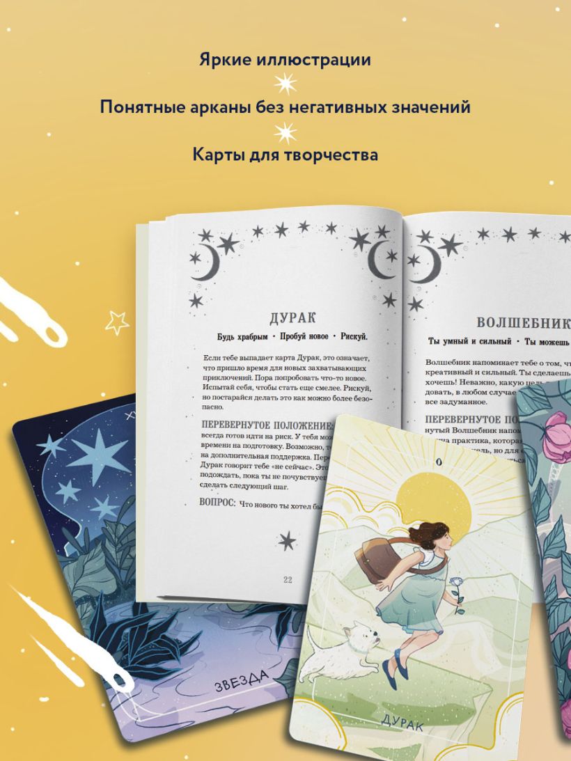 «Мое первое Таро» — классическая колода карт Таро с авторским стилем и иллюстрациями Терезы Рид. Колода опирается на гадательную систему Таро Уэйта, она станет отличным подарком для начинающих тарологов!