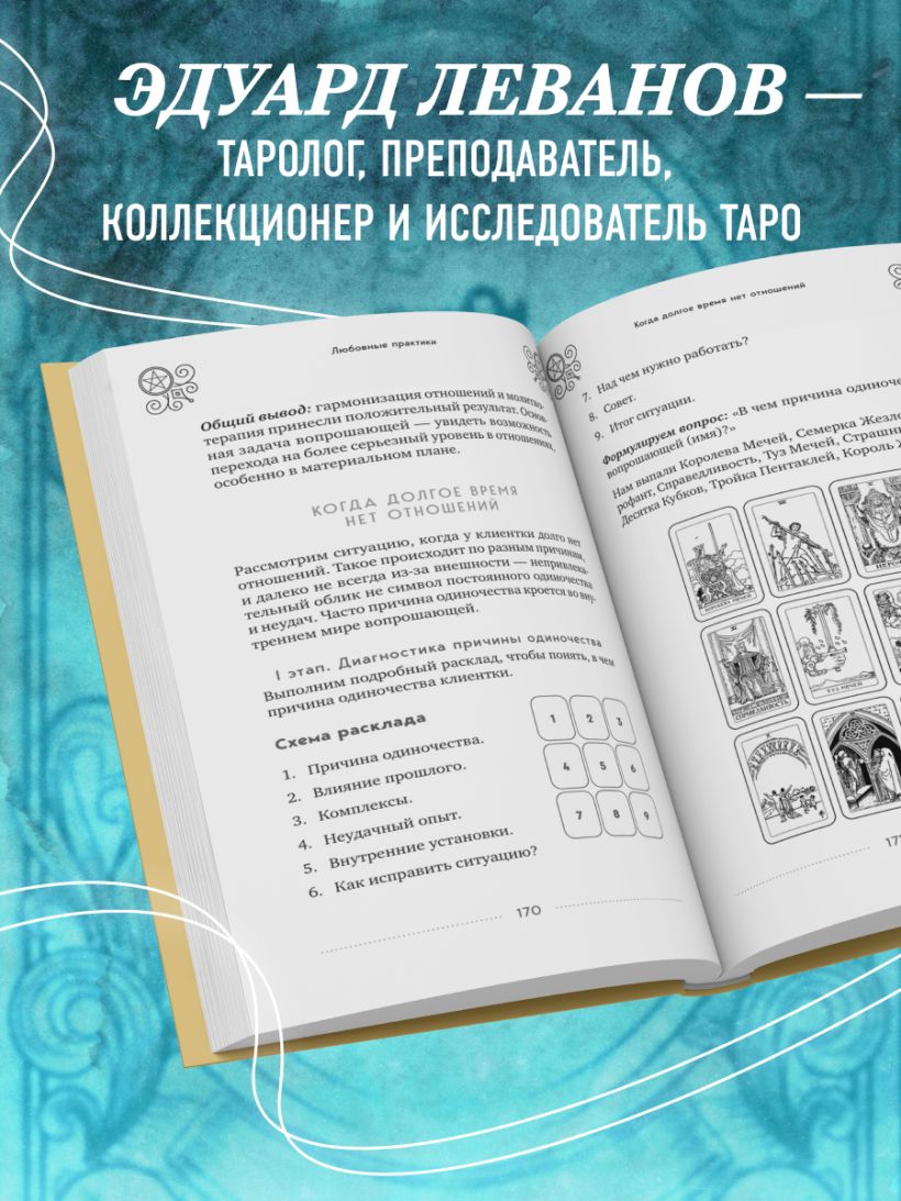Эдуард Леванов — практикующий таролог, преподаватель, коллекционер и исследователь Таро, автор полюбившейся читателям книги «Таро для начинающих», путеводителя по самой популярной колоде Таро — «Таро Артура Уэйта. История, толкование, расклады», а также книги по раскладам «100 раскладов Таро на все случаи жизни». Его система чтения Таро основана на древних и традиционных значениях карт, адаптированных под современную реальность. В личной коллекции Эдуарда более 50 традиционных и старинных колод Таро, которые он использует в работе.
