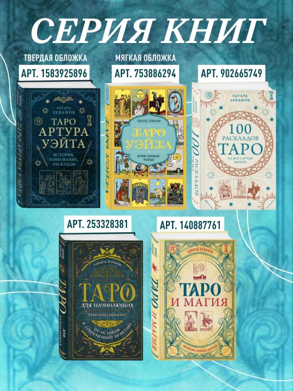 «Таро Уэйта» — изучаем подробно, системно и «с нуля». Эта книга для тех, кто хочет научиться читать легендарное Таро Уэйта и обращаться к картам за советом в своей повседневной жизни. Подробное системное руководство преподавателя и таролога Эдуарда Леванова поможет вам быстро запомнить толкования карт и изучить тайный язык Таро. • Базовое историческое толкование карт в прямом и перевернутом положении. • Современные значения карт для любовной, профессиональной и финансовой сфер. • Значения карт в качестве «карты дня» для быстрых предсказаний. • Рекомендации по работе с колодой и общие правила раскладов. • Более 20 тренировочных раскладов, которые помогут ответить на самые волнующие вопросы с примерами. Эдуард Леванов — таролог, преподаватель, коллекционер и исследователь Таро, автор полюбившейся читателям книги «Таро для начинающих», путеводителя по самой популярной колоде Таро — «Таро Артура Уэйта. История, толкование, расклады», также книги по раскладам «100 раскладов Таро на все случаи жизни». Его система чтения Таро основана на древних и традиционных значениях карт, адаптированных под современную реальность. В личной коллекции Эдуарда более 50 традиционных и старинных колод Таро, которые он использует в работе.