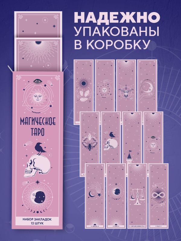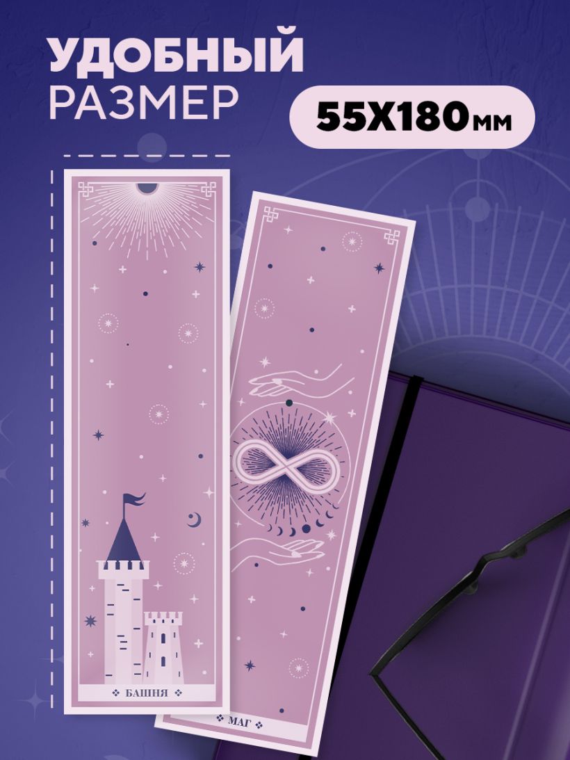 Набор закладок в стиле карт Таро создан для тех, кто ценит комфорт и любит окружать себя прекрасными вещами. Удобный формат в сочетании со стильным дизайном станут источником вдохновения и придадут вашей книге, ежедневнику или журналу индивидуальность.
