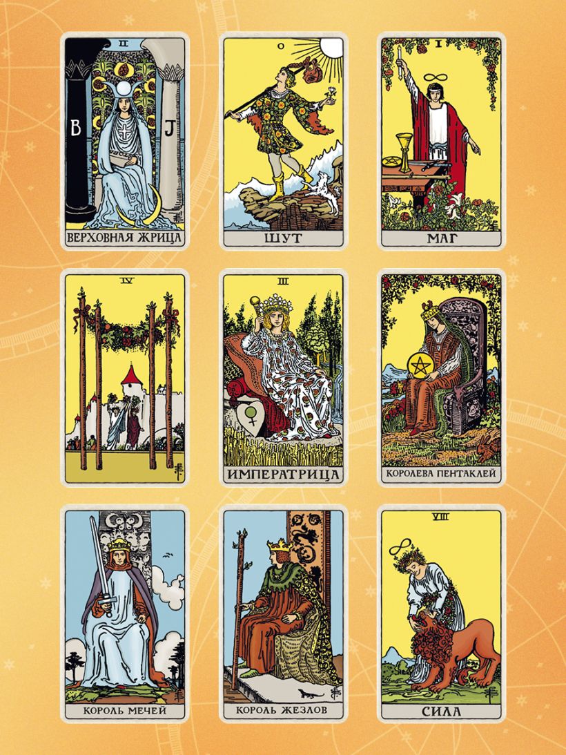 • классическая колода «Таро Уэйта» — 78 карт (22 Старших и 56 Младших арканов);