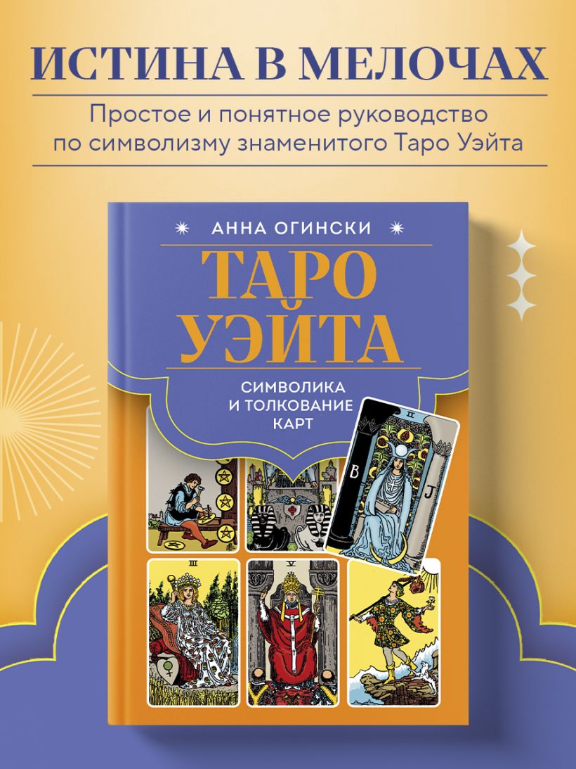 Раскройте скрытые смыслы самой знаменитой колоды Таро — Таро Уэйта! В новой книге Анны Огински, специалиста по мантическим системам и автора популярных книг-самоучителей по Таро и оракулу Ленорман, вы найдете детализированный и подробный разбор символики и толкование всех Старших и Младших Арканов знаменитого Таро Артура Уэйта и Памелы Колман Смит. С этой книгой вы научитесь «читать» происходящее на картах и сможете сделать ваше толкование карт и раскладов более глубоким и полным. Разбор символизма Старших и Младших Арканов знаменитого Таро Уэйта — наглядно и подробно! — включает: • Астрологические и эзотерические символы. • Символика цвета. • Персонажи, их внешность и поступки. • Животные и растения. • Природные явления и пейзажи. Цветная вклейка-приложение с изображениями колоды Таро Уэйта позволит подробно изучить цветовые решения и нюансы изображений, о которых рассказывается в книге. АННА ОГИНСКИ — руководитель учебного центра «Академия Ленорман», автор многочисленных книг, в числе которых «Таро. Полное толкование карт и базовые расклады для начинающих», «Расклады Таро. Более 130 раскладов для самых важных вопросов», «Оракул Ленорман. Самоучитель по гаданию и работе с картами», руководства к колоде «Новое Таро Уэйта» и к оракулу Ленорман «Тайный Сад», а также статей, курсов и материалов для самообучения по различным мантическим системам.