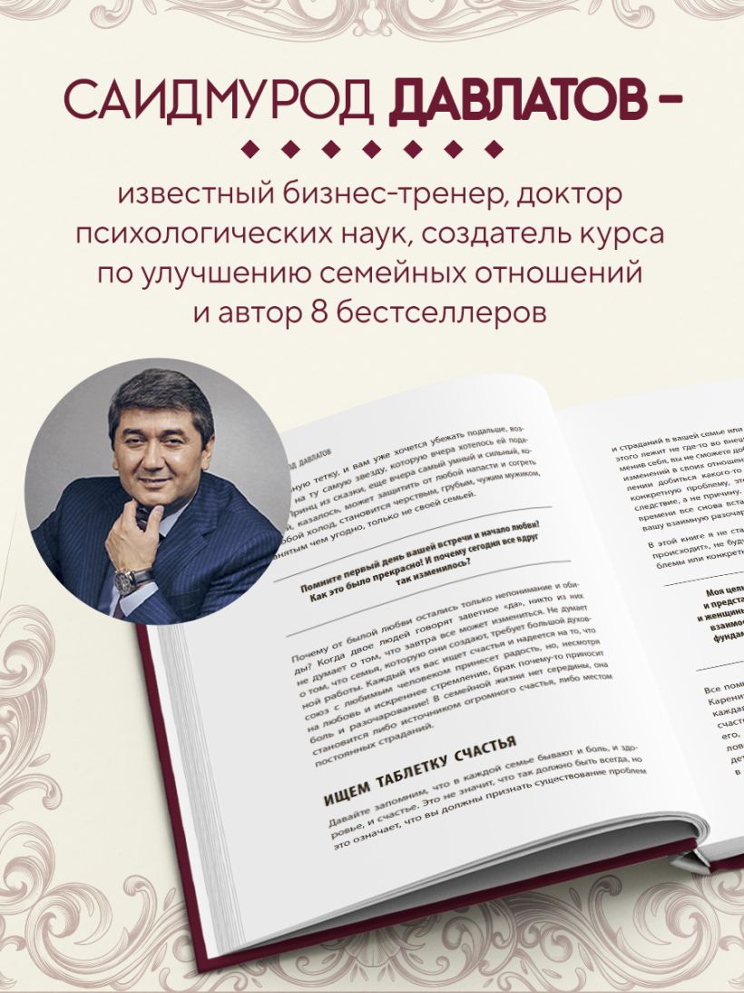 Саидмурод Давлатов — доктор психологических наук, эксперт по отношениям между мужчиной и женщиной, автор одноименного курса тренингов по улучшению семейных отношений «Что не знает женщина о мужчинах и что должен знать мужчина о женщинах» —1 и 2.