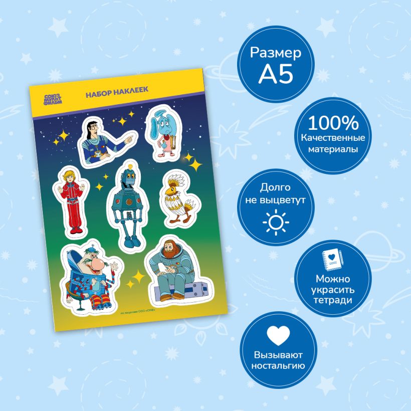 Космический набор наклеек по научно-фантастическому мультфильму «Тайна третьей планеты». Большие и маленькие любители далеких-далеких галактик останутся в восторге.