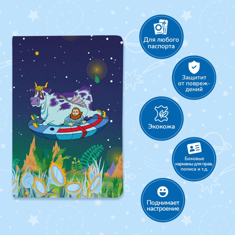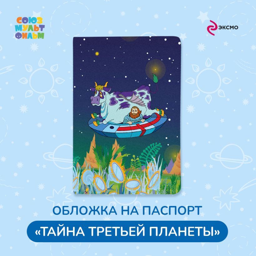 Космическая обложка на паспорт по научно-фантастическому мультфильму «Тайна третьей планеты». Большие и маленькие любители далеких-далеких галактик останутся в восторге.
