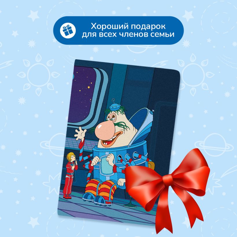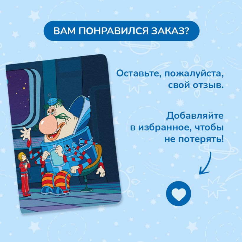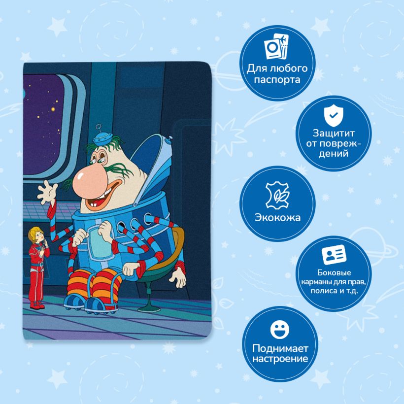 Космическая обложка на паспорт по научно-фантастическому мультфильму «Тайна третьей планеты». Большие и маленькие любители далеких-далеких галактик останутся в восторге.