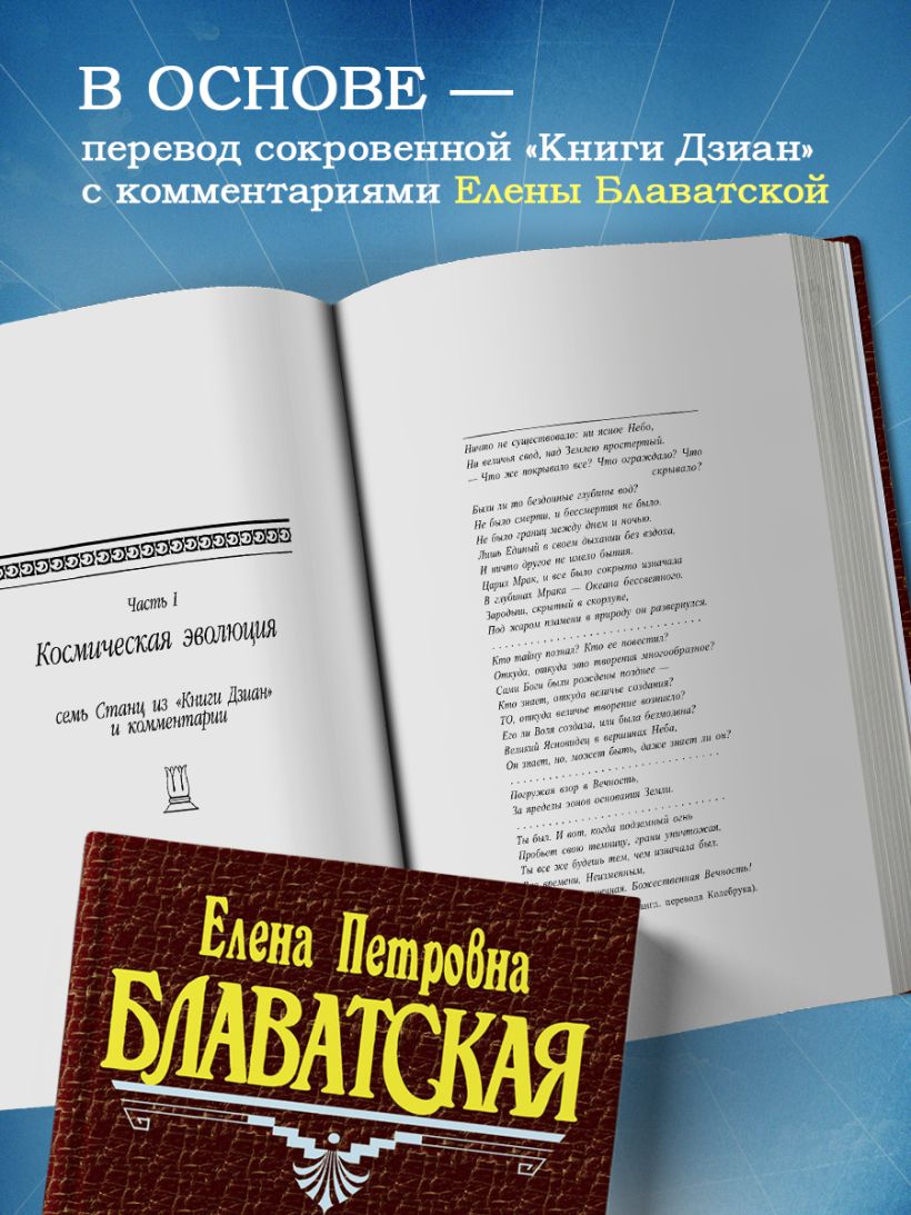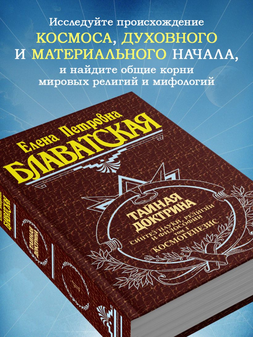 «Тайная доктрина» - главное сочинение Елены Петровны Блаватской в трех томах. Основу этого произведения составляют тексты, переведенные из сокровенной «Книги Дзиан» с комментариями и пояснениями автора. Также в этом труде подробно рассматривается фундаментальная символика, используемая великими религиями и мифологиями мира, и «делается попытка собрать вместе древнейшие основы и сделать из них одно гармоническое и неразрывное целое».