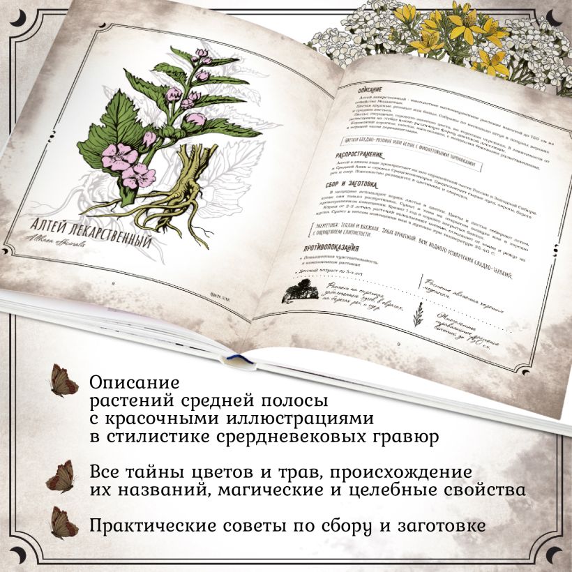 Перед вами — гримуар, наполненный тайными знаниями о растениях. На страницах подробно изложены описания цветов, деревьев и трав, методы заготовки, химический состав и медицинские свойства. Книга познакомит с интересными древними мифами разных народов о растениях и раскроет происхождение их названий. Здесь вы найдёте историю растений, методы их применения в целительных, бытовых или магический целях.