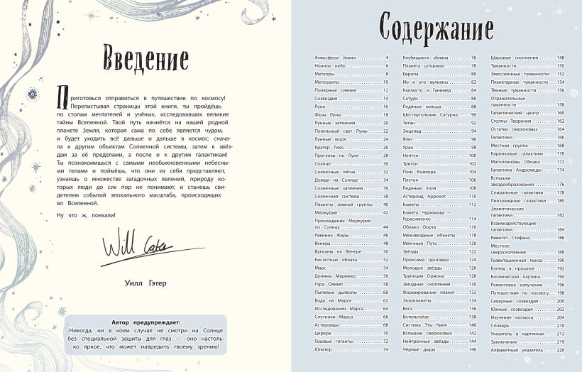 Эта энциклопедия — настоящее сокровище для детей, которые хотят больше узнать о космосе. Эмоции и впечатления, которые она подарит ребёнку, будут поистине бесценными! Ведь чтобы написать этот уникальный путеводитель по Вселенной, член Королевского астрономического сообщества Великобритании Уилл Гэтер объездил полмира! Он изучал звёзды, кометы и затмения, наблюдал редчайшие явления вроде прохождения планет по солнечному диску, консультировался со специалистами ведущих обсерваторий, а также НАСА и Европейского Космического Агентства. Результатом многолетних трудов автора и стала эта потрясающая книга! А благодаря золотому обрезу и эксклюзивной обложке с золотым тиснением и тактильными спецэффектами издание станет настоящей жемчужиной любой книжной полки и прекрасным подарком по любому поводу!