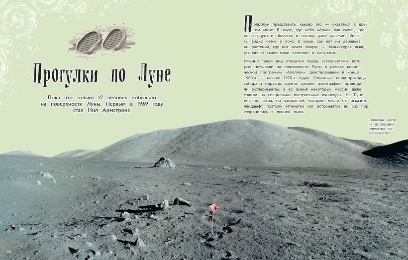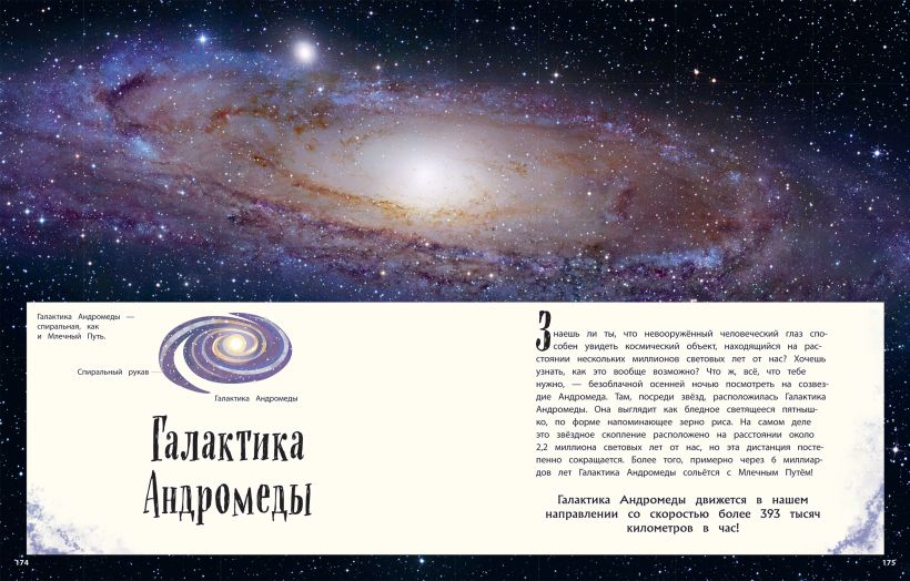 Это невероятно красочное издание входит в ТОП-100 лучших в мире книг по астрономии рейтинга Amazon. Оно посвящено одной из самых захватывающих тем — нашей Вселенной. А ещё у энциклопедии есть удивительный секрет: она светится в темноте! Читатели узнают, как образовались разные небесные тела, в чём секрет природных явлений, наблюдаемых в небе, как находить невооружённым глазом различные созвездия и планеты и многое другое. Карты небесных полушарий и сделанные своими руками астрономические инструменты помогут каждому мастерски ориентироваться в самых загадочных уголках звёздного неба! А разглядеть объекты Солнечной системе во всей их красе позволят большие и яркие фотографии. Книга будет интересна и полезна как школьникам, так и взрослым любителям космоса. Она отлично подходит для изучения всей семьёй и послужит идеальным подарком по любому поводу!
