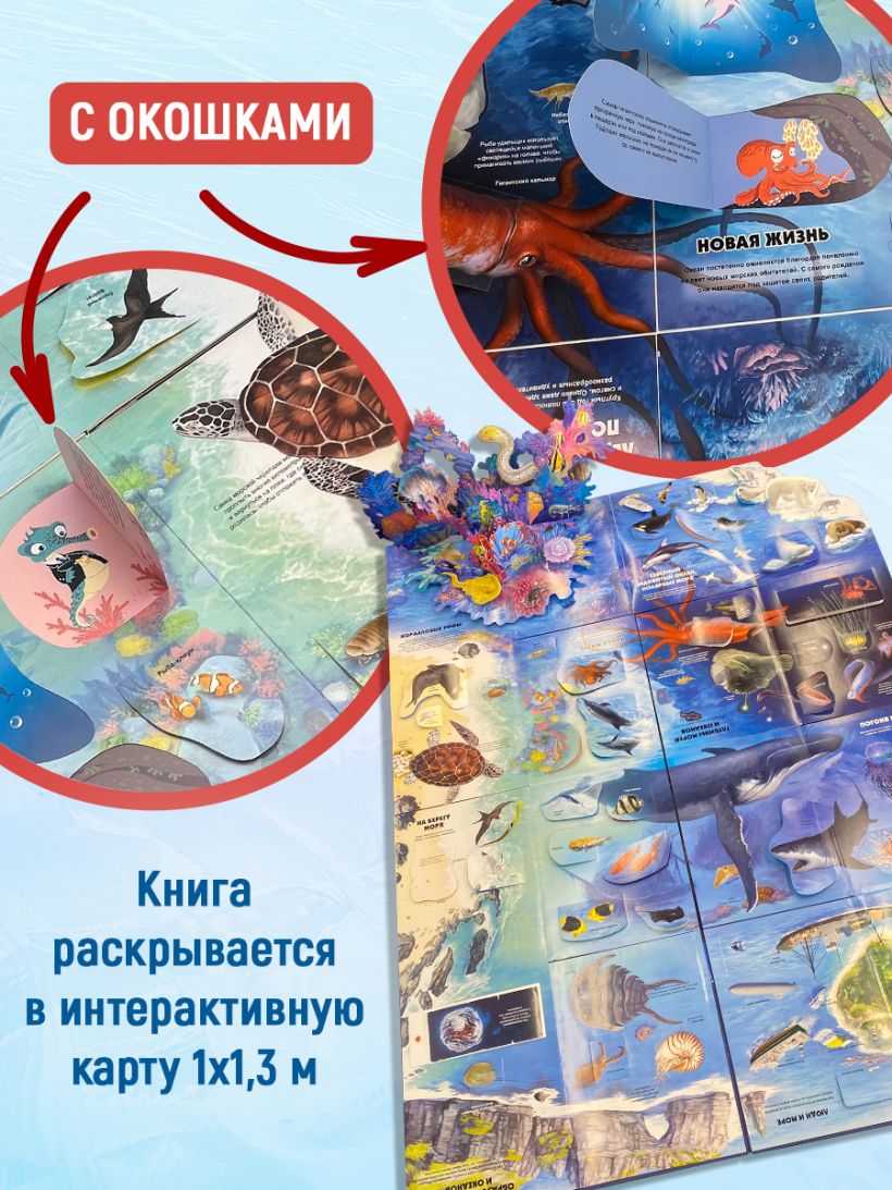 3. Под секретным магнитным клапаном на корешке книги, словно в старинном пиратском сундуке, скрывается настоящее сокровище! Это большая, подробная карта морского дна с точным описанием. Вы можете расстелить её прямо на полу комнаты и почувствовать себя настоящими океанологами!