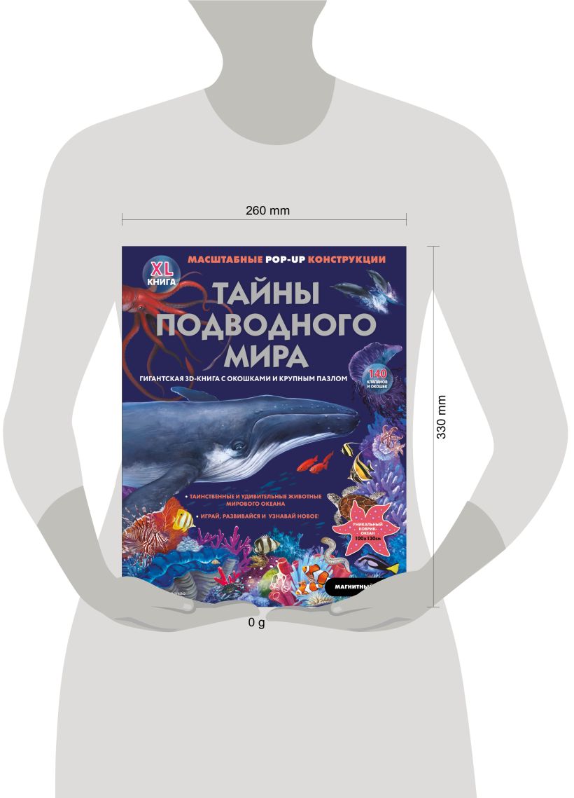 ЗD-книга «Тайны подводного мира» — это великолепный подарок юным читателям, интересующимся жизнью подводного царства. Под её яркой обложкой с секретным магнитным клапаном скрывается множество сюрпризов.