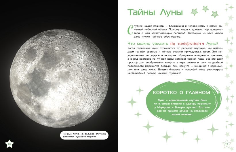 Это невероятно красочное издание входит в ТОП-100 лучших в мире книг по астрономии рейтинга Amazon. Оно посвящено одной из самых захватывающих тем — нашей Вселенной. А ещё у энциклопедии есть удивительный секрет: она светится в темноте! Читатели узнают, как образовались разные небесные тела, в чём секрет природных явлений, наблюдаемых в небе, как находить невооружённым глазом различные созвездия и планеты и многое другое. Карты небесных полушарий и сделанные своими руками астрономические инструменты помогут каждому мастерски ориентироваться в самых загадочных уголках звёздного неба! А разглядеть объекты Солнечной системе во всей их красе позволят большие и яркие фотографии. Книга будет интересна и полезна как школьникам, так и взрослым любителям космоса. Она отлично подходит для изучения всей семьёй и послужит идеальным подарком по любому поводу!