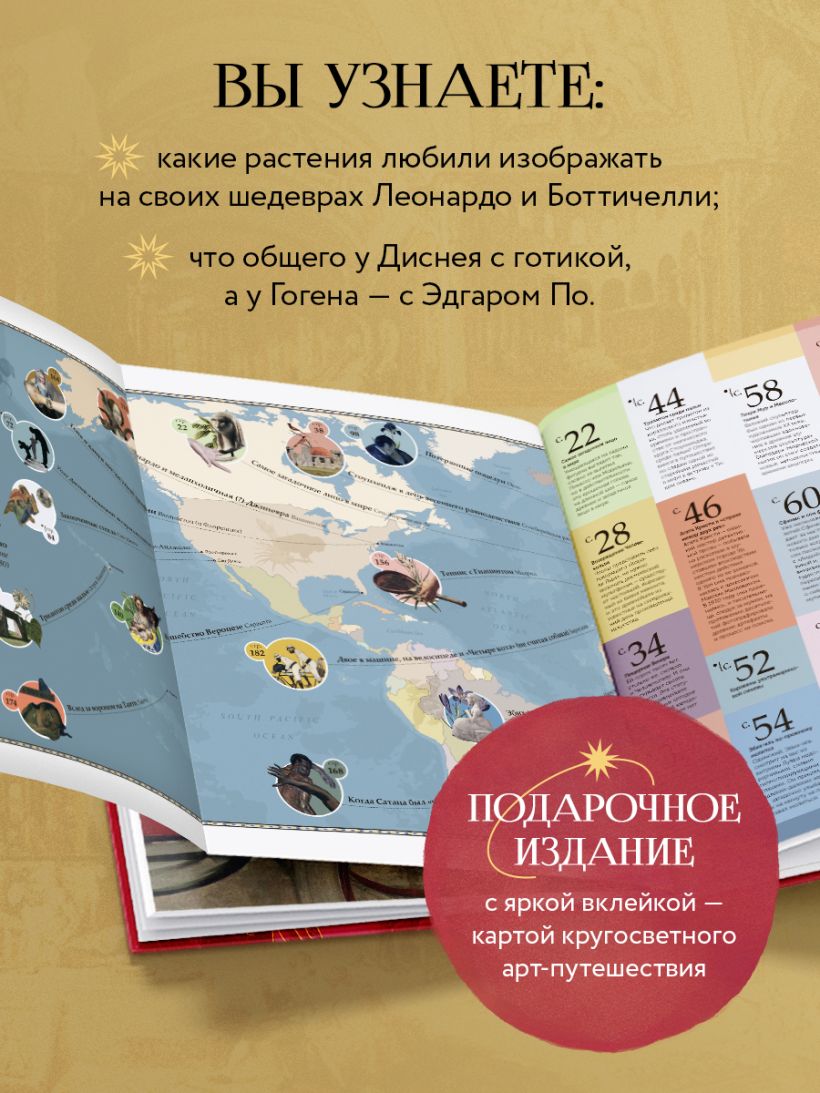 Проследовав прихотливыми маршрутами от Парижа до Таити, от Стоунхенджа до Мальты и островов Тонга, от Мадрида до Карибских островов, от Лос-Анджелеса до Наумбурга, историк искусства Глория Фосси собрала захватывающие истории о больших и малых шедеврах мирового искусства. В своей книге она предлагает читателю повторить это путешествие по следам как всемирно известных, так и безымянных художников всех времен, от доисторического периода до наших дней. Раскладывающаяся карта-вклейка будет незаменима в пути и станет ярким атрибутом этого кругосветного арт-путешествия.