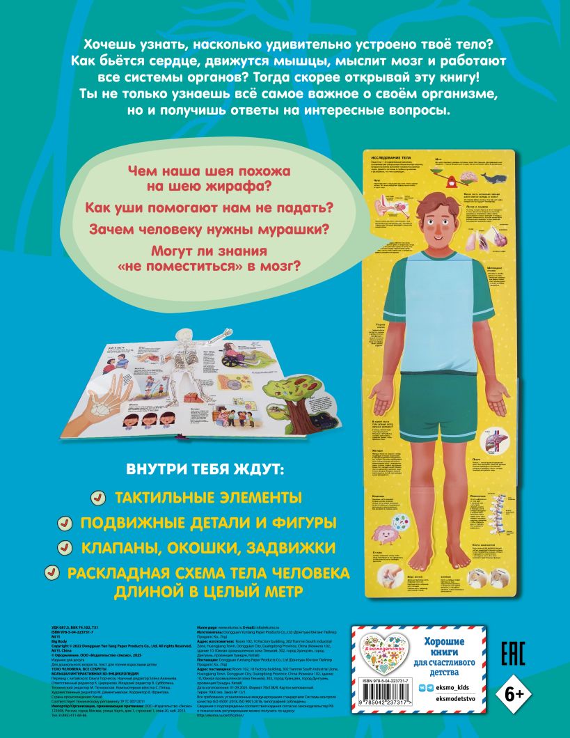 Большая яркая энциклопедия — прекрасный помощник для школьника в изучении устройства тела человека. Ребёнок узнает, кем были дальние предки человеческого рода, каким образом мозг получает информацию от кончиков пальцев ног, как работает наша иммунная система, что такое биологическая память и где она записана. Юный читатель найдёт ответы на все вопросы и станет настоящим учёным! Эта анатомическая энциклопедия отличается прекрасным взвешенным изложением научных фактов и даёт полноценное представление о причинах, структуре, процессах, не перегружая юного читателя. Разнообразная подача информации не даст заскучать: в книге множество увлекательных схем всех систем органов, древо эволюции человека, а также словарь полезных слов. Издание рекомендовано детям среднего школьного возраста. Красочная увлекательная книга станет прекрасным подарком по любому поводу!