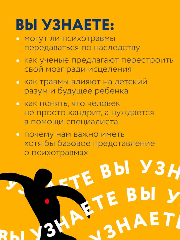 Есть и хорошие новости. Последствия психической травмы можно значительно уменьшить и даже полностью преодолеть. Исследование Бессела Ван дер Колка основано на 30-ЛЕТНЕМ ОПЫТЕ РАБОТЫ с людьми, пережившими психологическую травму. Автор предлагает разные ПУТИ ее лечения, включая инструменты нейробиологии, а также спорт и йогу — то есть все, что позволяет восстановить нейропластичность мозга. Эта книга поможет понять, почему мы можем одновременно как ранить друг друга, так и исцелять, и дает надежду на новую жизнь.