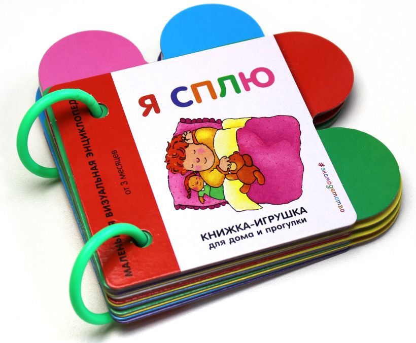 Каждая книга серии «Книжка-игрушка для дома и прогулки» — это целый комплект развивающих игровых карточек, скреплённых кольцами. Она станет отличным спутником вашего малыша в любое время дня!