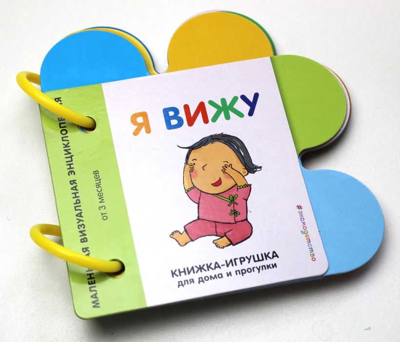 Каждая книга серии «Книжка-игрушка для дома и прогулки» — это целый комплект развивающих игровых карточек, скреплённых кольцами. Она станет отличным спутником вашего малыша в любое время дня!