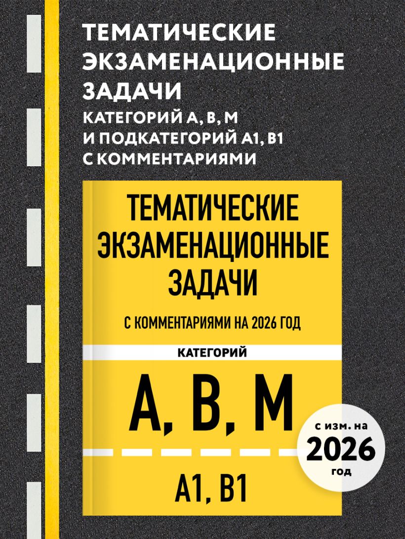 Тематические экзаменационные задачи категорий "А", "В", "М" и подкатегорий "А1", "В1" с комментариями с изм. на 2026 г.