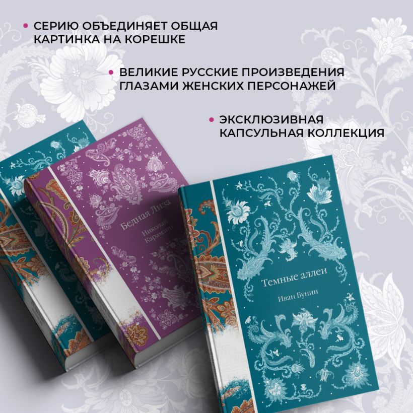 Серия «Элегантная русская классика» предлагает взглянуть на великие произведения глазами женских персонажей. Любовные переживания, роковые ошибки, сила духа и поиски справедливости — все, чем славится классическая русская литература, в страстном ярком дизайне.