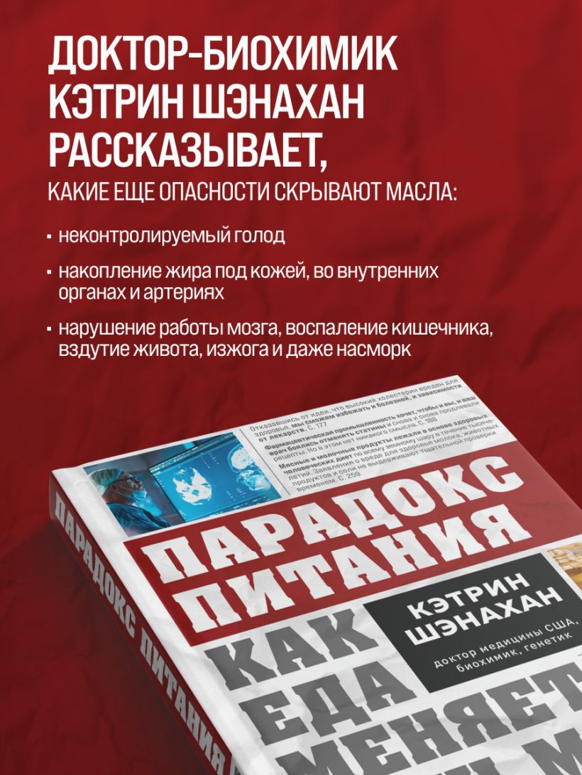 Знаете ли вы, что употребление большой порции картофеля фри, приготовленного на растительном масле, приводит к токсичности, сравнимой с выкуриванием 24 сигарет? Биохимик, получившая образование в Корнелле и ставшая семейным врачом, доктор Кейт Шэнахан знакомит нас с уважаемыми учеными, которые предупреждают: растительные масла представляют собой катастрофу для общественного здравоохранения, разрушая клетки нашего организма, истощая антиоксиданты и способствуя токсичности свободных радикалов.