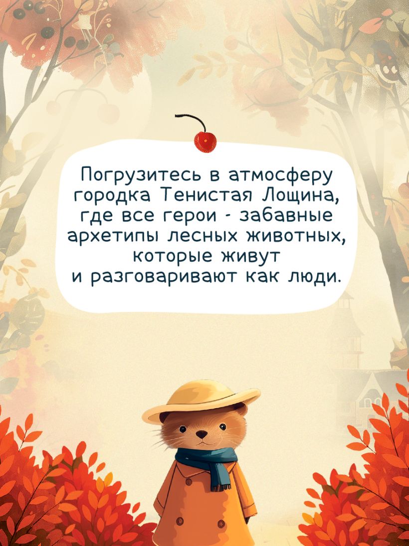 ПОГРУЗИТЕСЬ В АТМОСФЕРУ ГОРОДКА ТЕНИСТАЯ ЛОЩИНА, ГДЕ ВСЕ ГЕРОИ — ЗАБАВНЫЕ АРХЕТИПЫ ЛЕСНЫХ ЖИВОТНЫХ, КОТОРЫЕ ЖИВУТ И РАЗГОВАРИВАЮТ КАК ЛЮДИ.