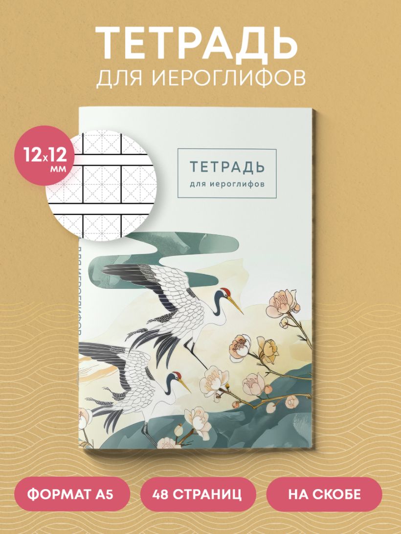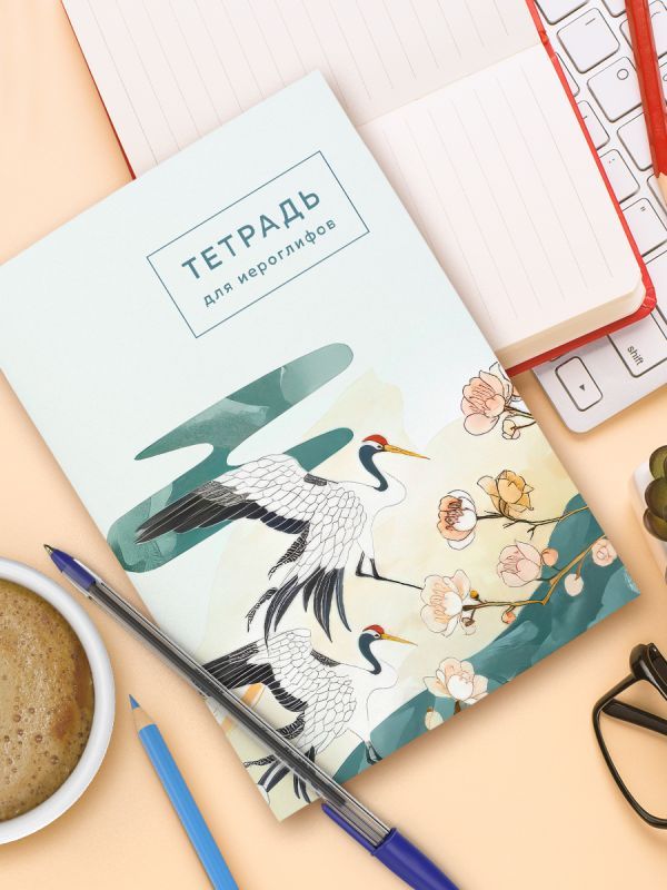 Тетрадь для иероглифов (цапли и цветы)