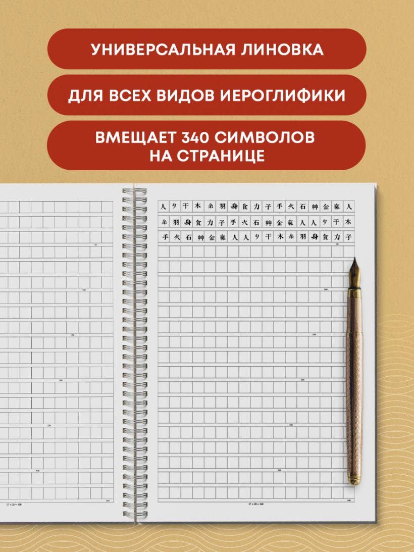 Тетрадь для иероглифов включает 60 страниц белой и плотной бумаги с разлинованными клетками 9х9 мм. Издание станет помощником в изучении восточных языков как для начинающих, так и для тех, кто совершенствует свои навыки каллиграфии. Универсальный формат подойдет для написания китайских, корейских и японских иероглифов.
