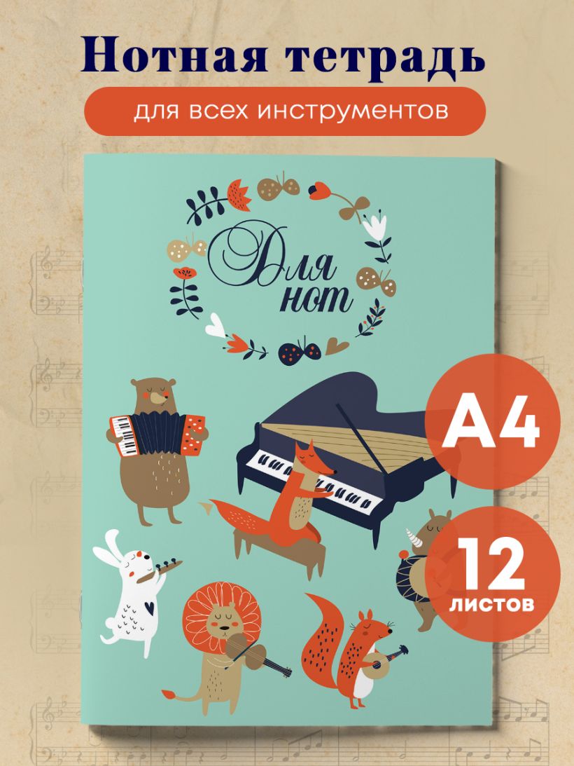 Тетрадь для нот. Лесной оркестр (12 л., А4, вертикальная, скрепка)