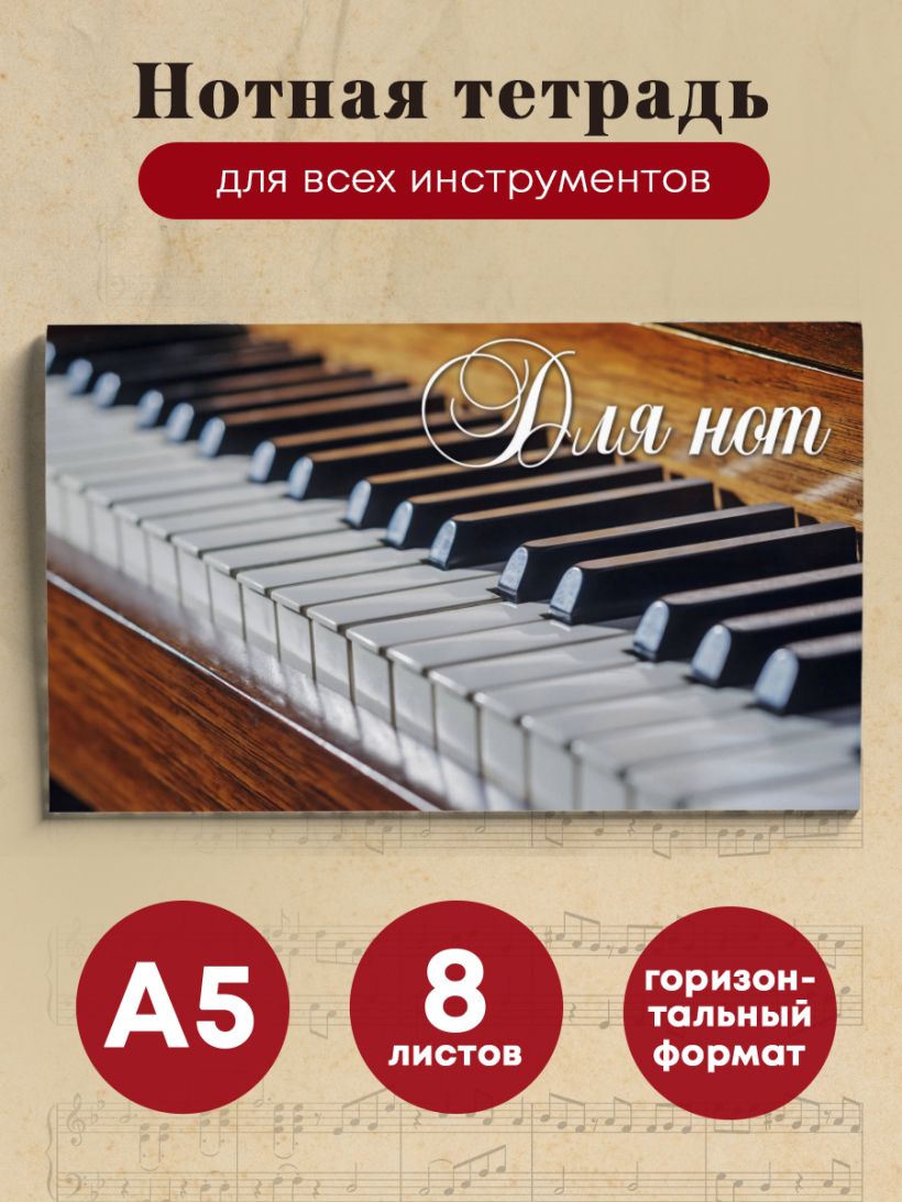 Тетрадь для нот. Пианино (8 л., А5, горизонтальная, скрепка)