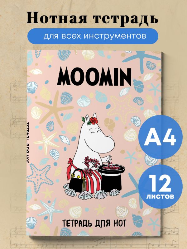Тетрадь для нот. Муми-тролли. Муми-мама (12 л., А4, вертикальная, скрепка)